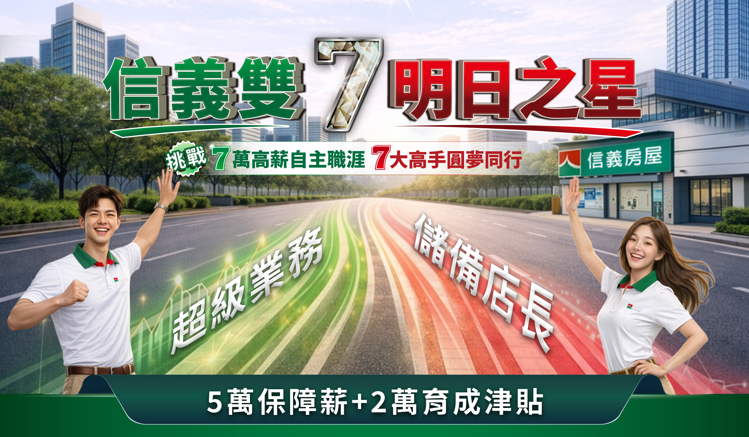 面對世代價值轉變與人才競爭升溫,企業如何吸引並發展優質人才,成為關鍵課題。信義企業集團因應2030年願景「以企業倫理共創永續好生活,成為世界級服務業」,擁抱新世代人才需求並提供全新升級的職涯樣貌,自2026年3月16日起針對不動產業務新人推出「信義雙7明日之星」招募計畫,歡迎零房仲經驗且具備大學學歷者加入,可享前半年保障月薪5萬,另具菁英條件者,包括優質新鮮人及具一定服務或管理經驗,提供首年挑戰7萬月薪及菁英培訓課程,若任職一年通過階段性考核,將進入信義房屋人才加速發展計畫,可依自身職涯規劃挑戰接任店主管或成為超級業務,在信義房屋一圓職涯夢想!
